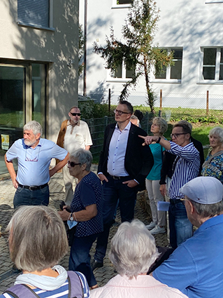 Diesmal besuchten die Teilnehmer in Kirchheim zusammen mit den Bauträgern und Architekten Hans-Peter Birkenmaier und Matthias von Schröder die neuen Wohnquartiere „Hallenbadquartier“ , „Henrietten Garten“ und „Steingauquartier“.